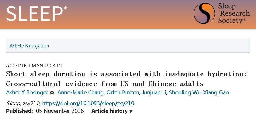 宾夕法尼亚州立大学健康行为学系的Rosinger教授和唐山开滦医院Li教授团队开展了一项基于美国与中国人群跨文化背景的研究,分析睡眠时间与尿液水化标记物之间的联系。