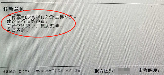进一步CT检查提示,静静的右肾出现了多种问题:肾盂输尿管移行处憩室样病变、体积缩小且皮质变薄、肾囊肿。
