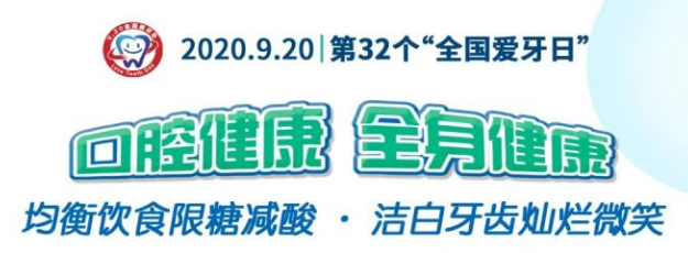 今年的9月20日是第32个“全国爱牙日”,今年的爱牙日主题是“口腔健康,全身健康”,副主题是“均衡饮食限糖减酸 洁白牙齿灿烂微笑”。