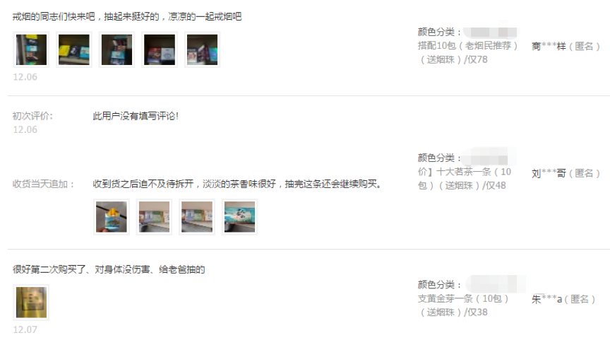点进商品详情,不少都打着“戒烟神器”、“茶制代烟品”、“不含尼古丁”等宣传口号,评论也是好评如潮。